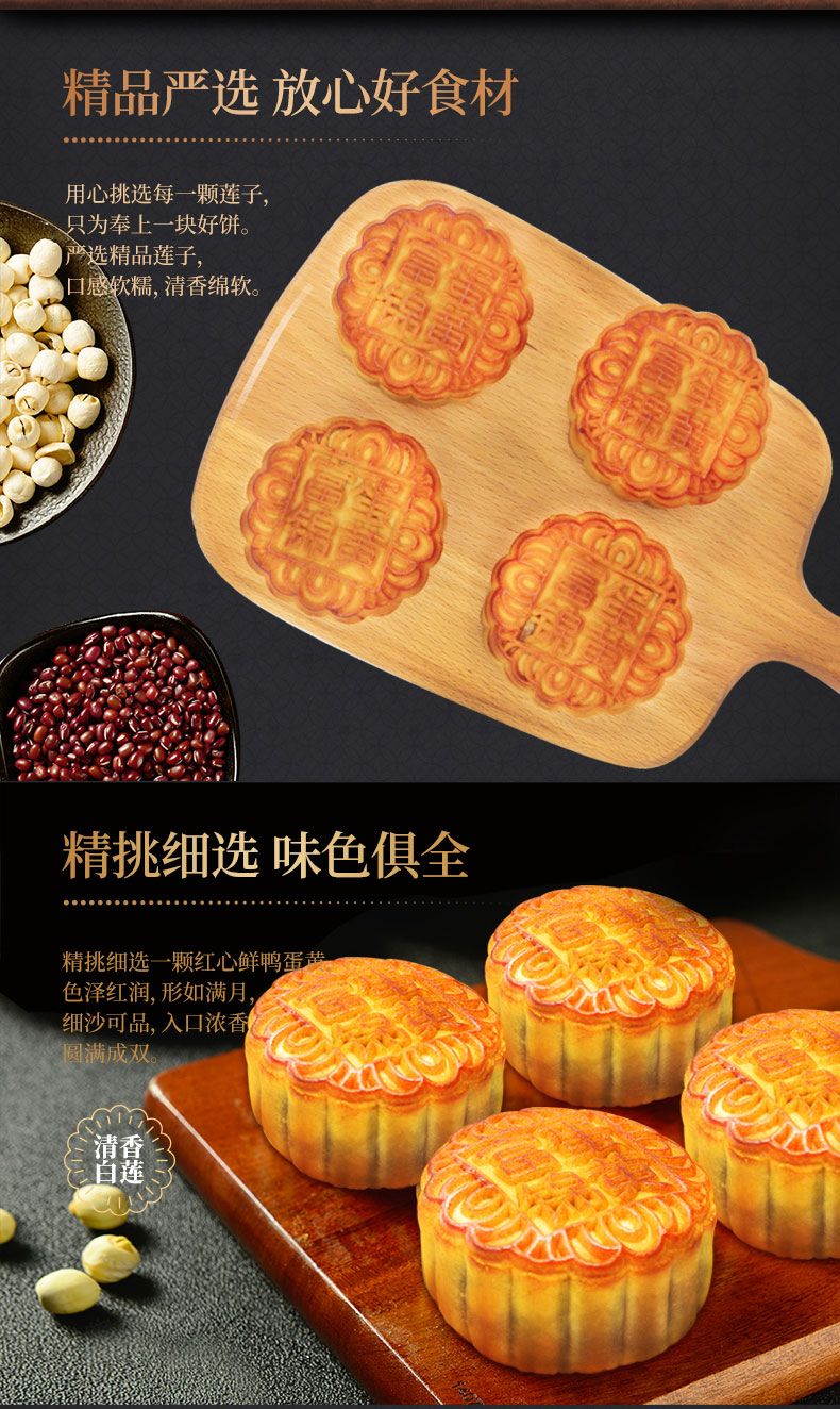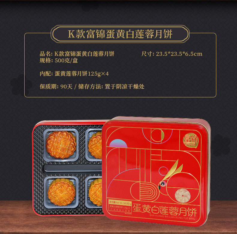配餅名稱及規格: 蛋黃蓮蓉月餅125g*4 條形碼:6921644316866 盒子尺寸:23.5*23.5*6.5cm 外箱尺寸:49.5*29*34.5cm 零售價: 148.00 特售價:118.00元