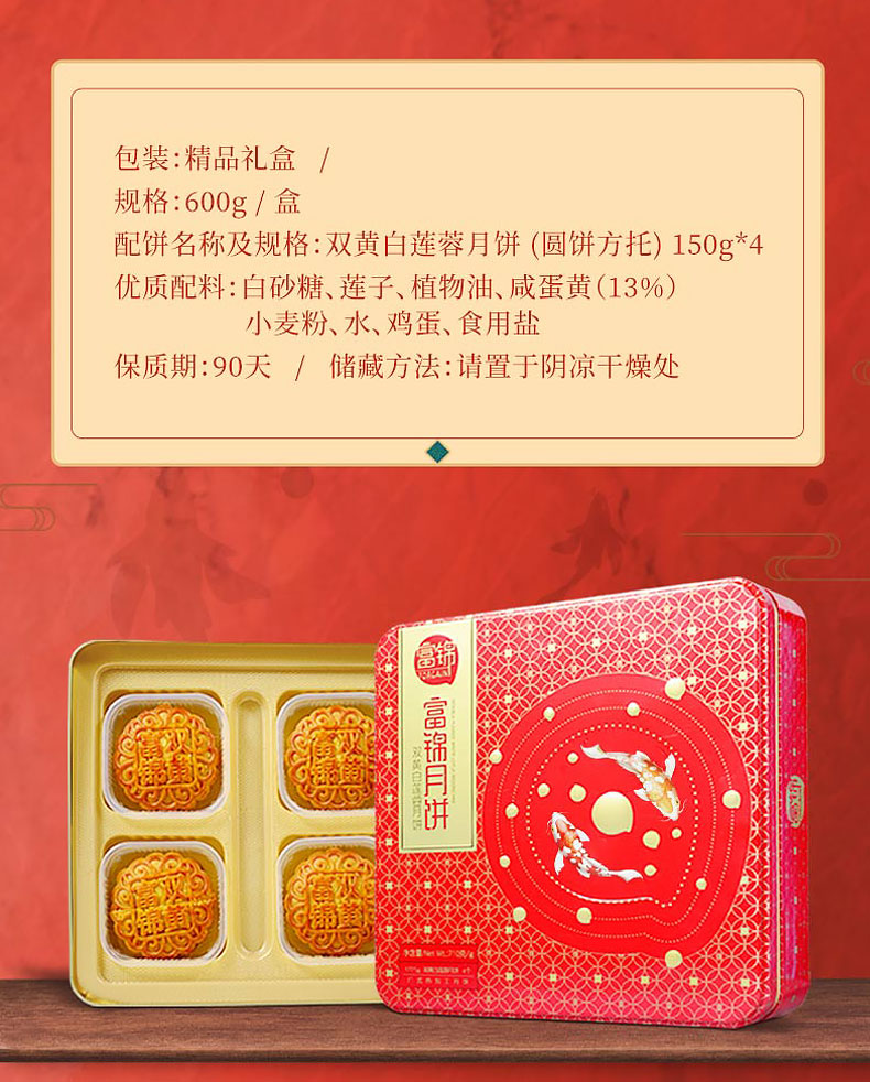 配餅名稱及規格: 雙黃白蓮蓉月餅150g*4 條形碼:6921644321624 盒子尺寸:26*26*7.5cm 外箱尺寸:54.5*29.5*40cm 零售價:208.00 特售價:178.00元 企業單位集采團購享團購價,歡迎來電咨詢:15914001429