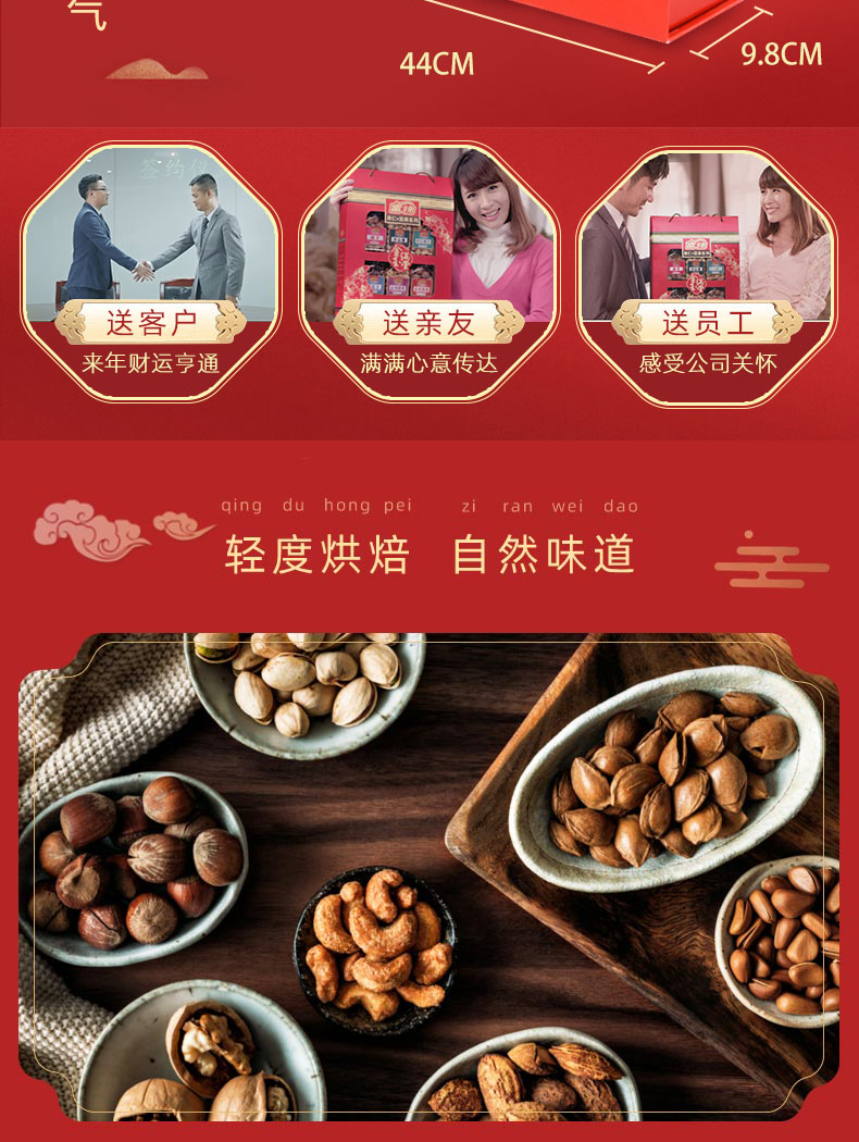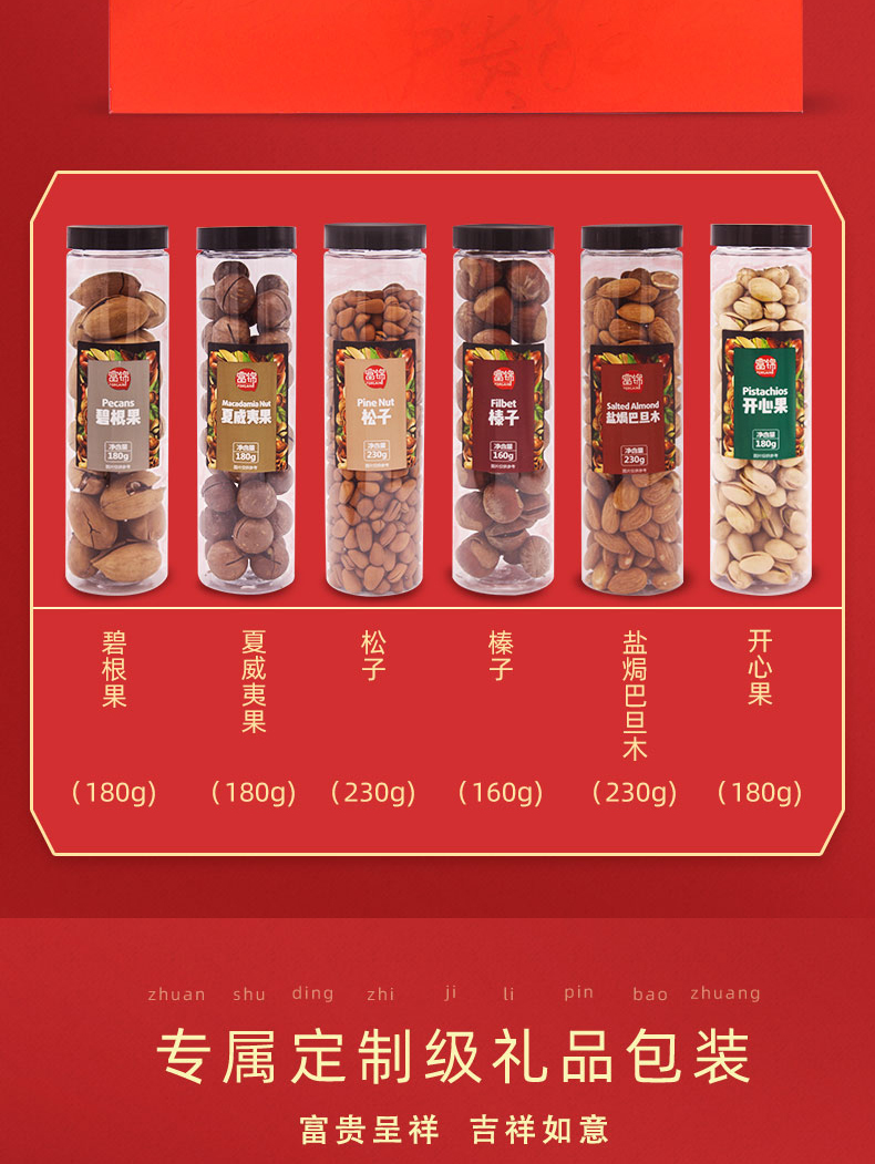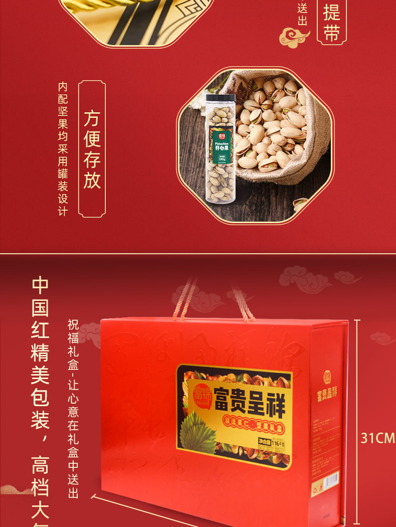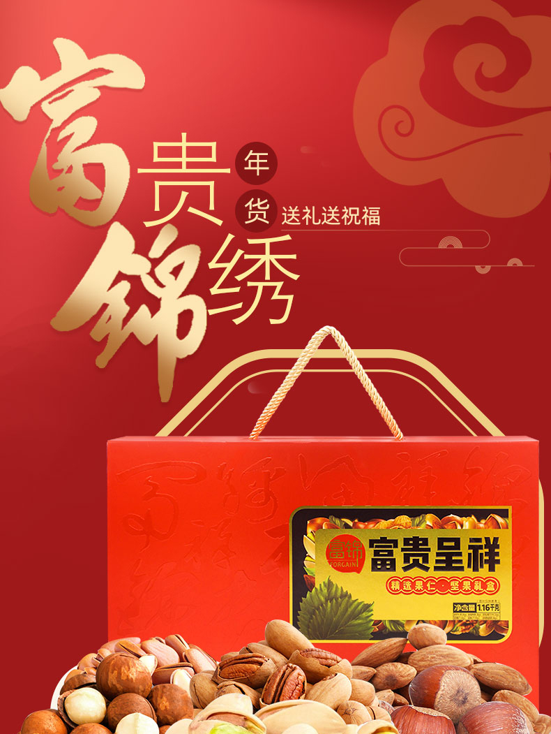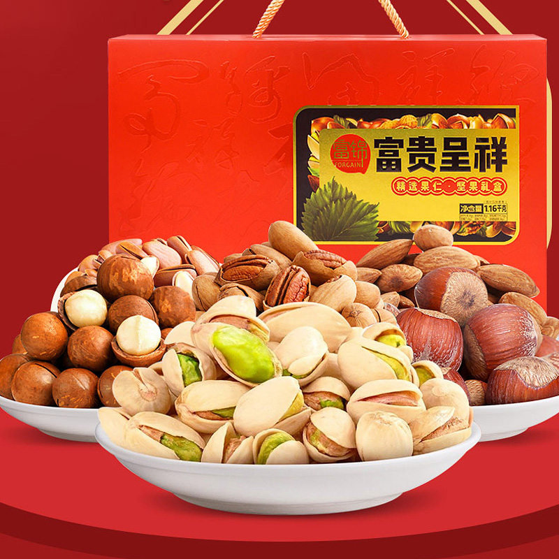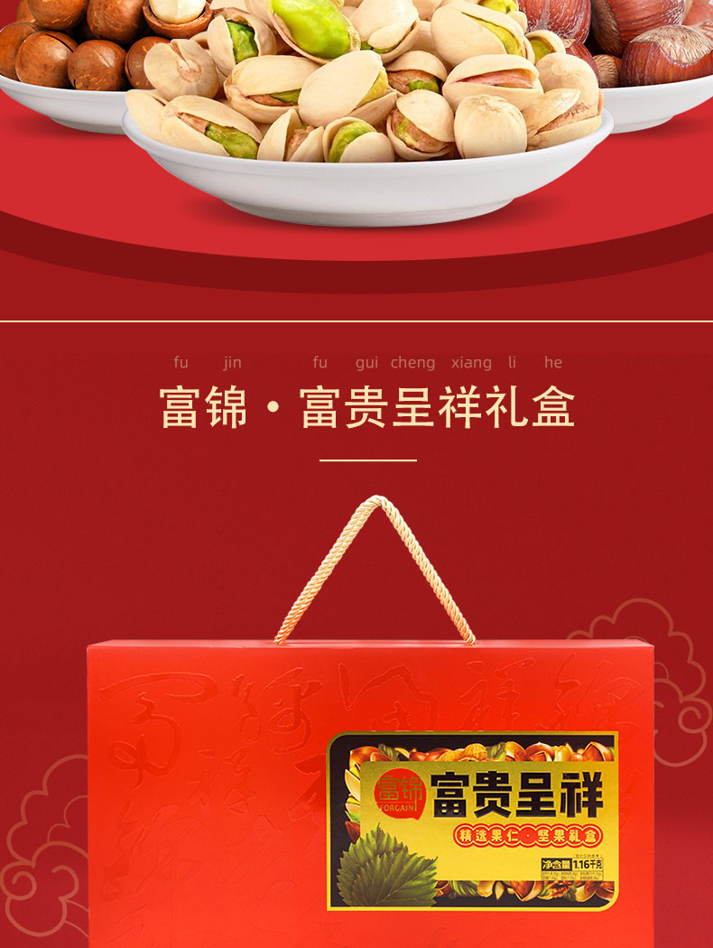 規格:1.16千克 條碼:6921644317054 尺寸:44x9.8x31cm 內配: 富錦開心果 200克 富錦榛子 160克